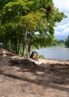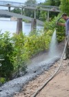 Šodien ar īpašu metodi – hidrosēju gar krasta nogāzi 200 m2 apjomā tika sēts zāliens. Šī metode ir aizgūta no Amerikas un līdz šim Ogrē nebija izmantota. Zāles sēklas, kas sagatavotas īpašā materiālā, ar hidrospiedienu tiek uzklātas uz zemes virsmas. Šo darbu veica IK Kristaps Liberts, kurš skaidro, ka materiāla sastāvā ir ūdens, zāliena sēklas, minerālmēsli, speciālā līme, krāsviela, lai var redzēt, kur zālīte ir iesēta, želejas granulas, kas uztur mitrumu, un stiklšķiedras matiņi kā saistviela. Šāds sastāvs sēklām nodrošina barības vielas, siltumu un mitrumu, tās ātrāk izdīgst. Hidrosēju izmanto, lai apsētu stāvas nogāzes, turklāt sēklas neaizpūš vējš, tās neapēd putni un neizskalo lietus.