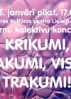 25. janvārī plkst. 17.00 Lielajā zālē bērnu kolektīvu koncerts KRIKUMI, KRAKUMI, VISĀDI TRAKUMI! Biļešu cena € 2.13 (Ls 1.50)