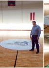 Ogres novada Sporta centra hallē vakar pabeigti darbi pie sporta zāles grīdas seguma pārbūves.