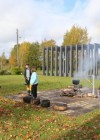 Pirms svinīgās objekta atklāšanas – lentas griešanas un koku un ogu krūmu stādīšanas K.Antonova un V.Sirsonis pateicās visiem, kuri iesaistījās objekta tapšanā, pasniedzot ziedus un bruņukuģa formas piparkūkas: arhitektam Guntim Grabovskim, māksliniecei Annai Heinrihsonei (foto pa kreisi), Rīgas Kuģu būves rūpnīcai, Ogres novada pašvaldībai un domes priekšsēdētājam Egilam Helmanim, Artūram Ivogenam ar brigādi, metāla dizaina vīriem Modrim Svilānam un Arvīdam Endziņam, SIA “Reverie Trading Group” video un audio speciālistiem Mārtiņam Priedītim un Gvido Ķirsim, Pēterim Līcim un SIA “Uceni”, komponistam Jēkabam Nīmanim, režisoram Dāvim Sīmanim – junioram, Rietumu bankas Labdarības fondam un Sergejam Grodņikovam, kā arī lēdmanietim Tālim Salam. Visi kā viens atzina, ka sākumā A.Sukuta idejai par “Potjomkina akas” izbūvi esot bijis grūti noticēt, bet darbs un sadarbība ar režisoru izvērtusies patiešām interesanta, un visu kopīga darba rezultātā izdevies īstenot A.Sukuta ieceri, ko viņš vēlas nodot pasaulei.