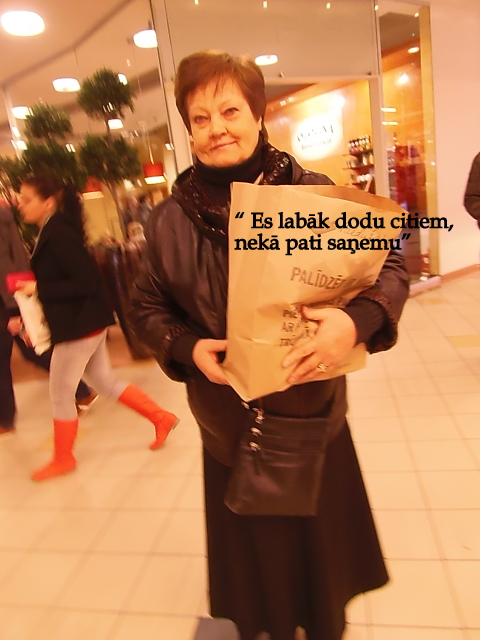 Neuzrunātie, bez vārda runas, pienāca, paņēma tukšo paciņu un devās iepirkumu tūrē, kā zinātāji. Kā zinātāji arī izrādījās, pasmaidīja un atteica, mēs ne jau pirmo reizi. Viņi bija, kā draugu plecs, domubiedri, ar sapratni. Lūgt palīdzību, lai arī priekš citiem, nav viegls darbs. Kā visi zinām, vārdi var celt un graut un tos nācās arī dzirdēt dažādus. Visvairāk šajā akcijā gribētos dzirdēt atbalstošos vārdus, jo mēs strādājam pēc labākās sirdsapziņas un gribam sagaidīt arī no citiem sapratni. Piedaloties šajās akcijās un aicinot cilvēkus atbalstīt tos, kam iet grūtāk, mēs domājam, ka katra indivīda dzīvē, kas palīdzību saņem, atbalsts ir tikai krīzes pārvarēšanas posmam un tālāk cilvēkam pašam jātiek galā. Galu galā, pie mums sarakstos minēti palīdzības lūdzēju un palīdzības saņēmēju vārdi un zinām par viņiem pietiekoši,lai saprastu,kuri ir tikai patērētāji un, kuriem palīdzība ārkārtas situācijai. Saņēmēju sarakstu kopijas atskaitei sūtam arī uz Lavijas Samariešu apvienību, jo situācijas tiek kontrolētas.Viņi mums sūta tukšās pārtikas paciņas un emblēmas, kā pateicību ziedotājam, kā arī reizēm atbrauc uz vietas situāciju pārbaudīt.