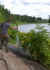 Šodien ar īpašu metodi – hidrosēju gar krasta nogāzi 200 m2 apjomā tika sēts zāliens. Šī metode ir aizgūta no Amerikas un līdz šim Ogrē nebija izmantota. Zāles sēklas, kas sagatavotas īpašā materiālā, ar hidrospiedienu tiek uzklātas uz zemes virsmas. Šo darbu veica IK Kristaps Liberts, kurš skaidro, ka materiāla sastāvā ir ūdens, zāliena sēklas, minerālmēsli, speciālā līme, krāsviela, lai var redzēt, kur zālīte ir iesēta, želejas granulas, kas uztur mitrumu, un stiklšķiedras matiņi kā saistviela. Šāds sastāvs sēklām nodrošina barības vielas, siltumu un mitrumu, tās ātrāk izdīgst. Hidrosēju izmanto, lai apsētu stāvas nogāzes, turklāt sēklas neaizpūš vējš, tās neapēd putni un neizskalo lietus.