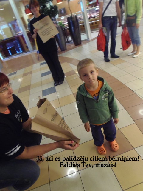 Mēs, brīvprātīgie, bijām patīkami pārsteigti par jaunajiem vecākiem, kā viņi saviem  bērniem mācīja iejūtību, sapratni, toleranci par tiem bērniem, kuru vecāki nevar atļauties saviem mazuļiem nopirkt gardākus, veselīgākus, dažādākus produktus. Viņi stāstīja, ka ar šo produktu palīdzību, ko viņi nopirks un ieliks brīvprātīgo izdalītajos maisiņos, palīdzēs tiem bērniņiem, kuriem ģimenē iet grūti.