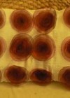 Sašuj spilvendrānu. Sagriež vēlamajā lielumā organzu, ar sveci apkausē maliņas, veido ziedus. Piešuj pie spilvendrānas.