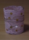Pagatavošanai nepieciešams stikla trauks, mežģīnes, rotājumi, līme.